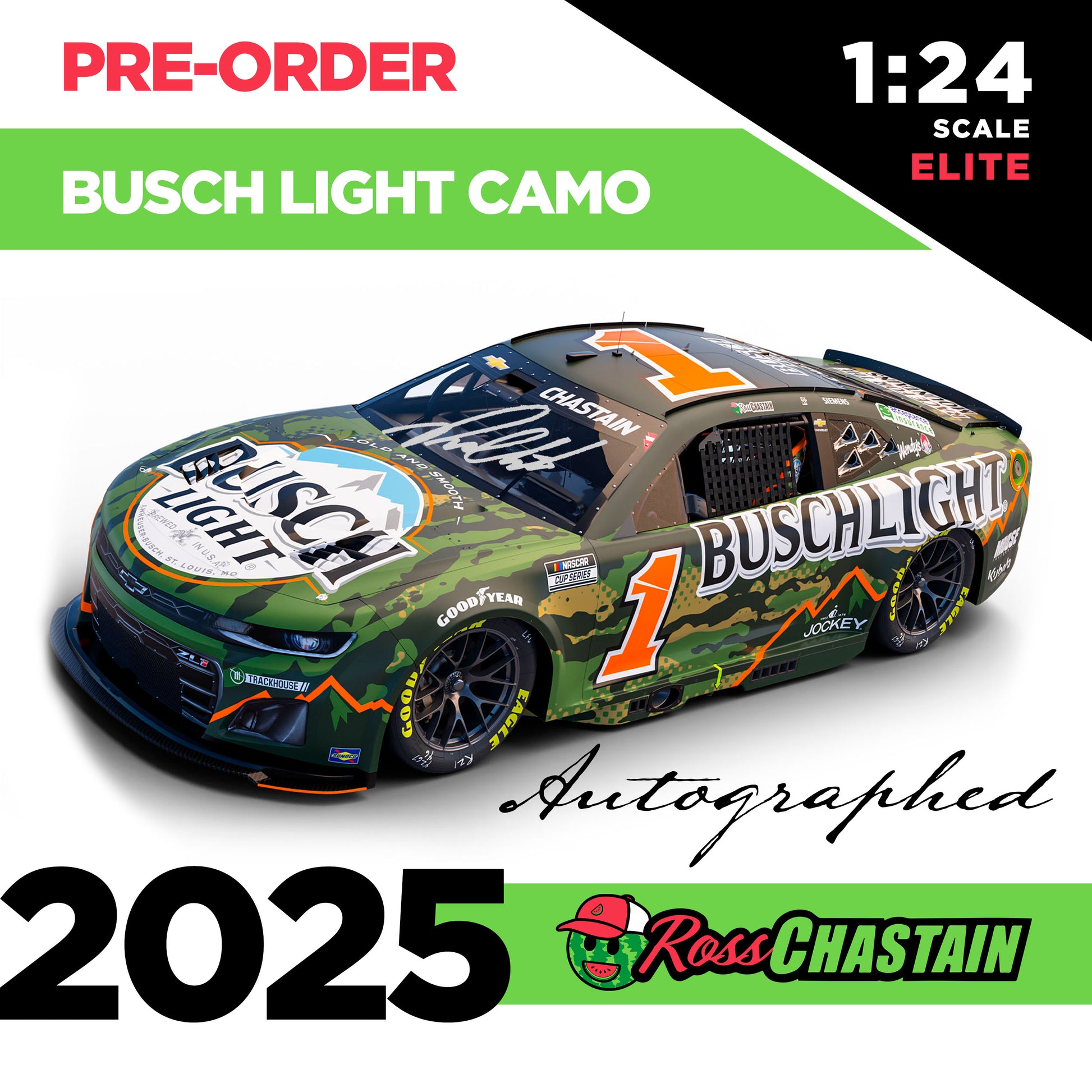 AUTOGRAPHED Ross Chastain 2025 No.1 1:24 Busch Light CAMO ELITE DIE-CAST